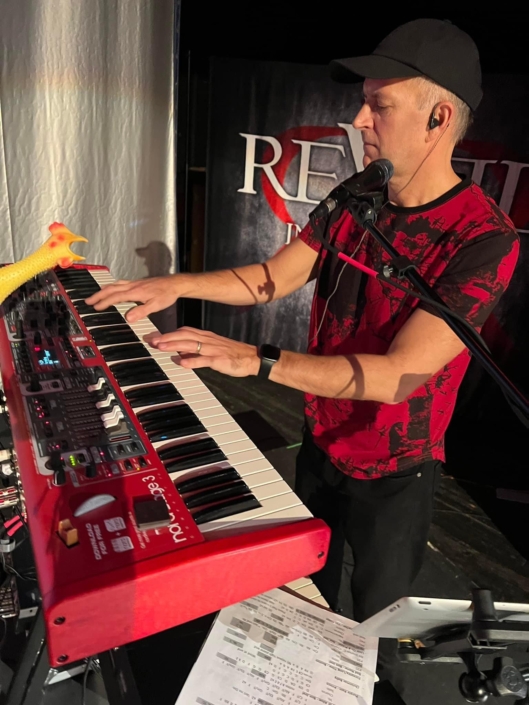 After rocking stages across the Midwest with This One’s Pink for 7 epic years, Paul embarked on a new chapter in October 2023 by joining Revel in Red. Armed with a love for crafting unique sounds and getting lost in the world of synthesizers, Paul was ready to share this passion with the band.
